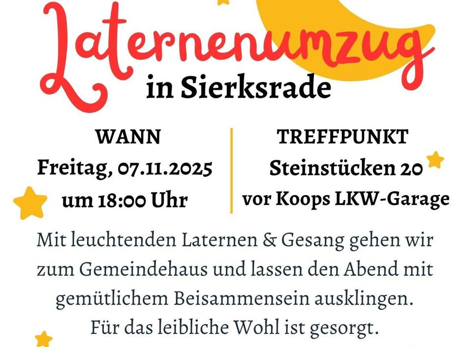 Am 7.11.2025 um 18:00 treffen wir uns vor Koops LKW-Garage (Steinstücken 20) mit leuchtenden Laternen! Mit herbstlichen Liedern und Gesang gehen wir zum Gemeindehaus und lassen den Abend mit gemütlichem Beisammensein ausklingen.